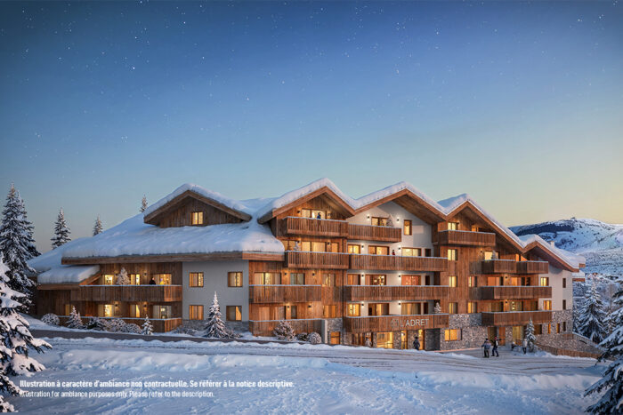 Alliant architecture traditionnelle et lignes contemporaines, la résidence séduit par son élégance et son intégration naturelle dans le paysage, avec un bardage composé de bois massif, d’enduits et de pierres naturelles, qui souligne son caractère montagnard.